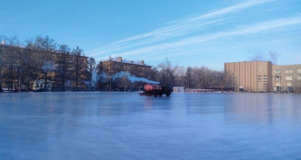 На стадионе «Спартак» в Новосибирске залили самый большой ледовый каток