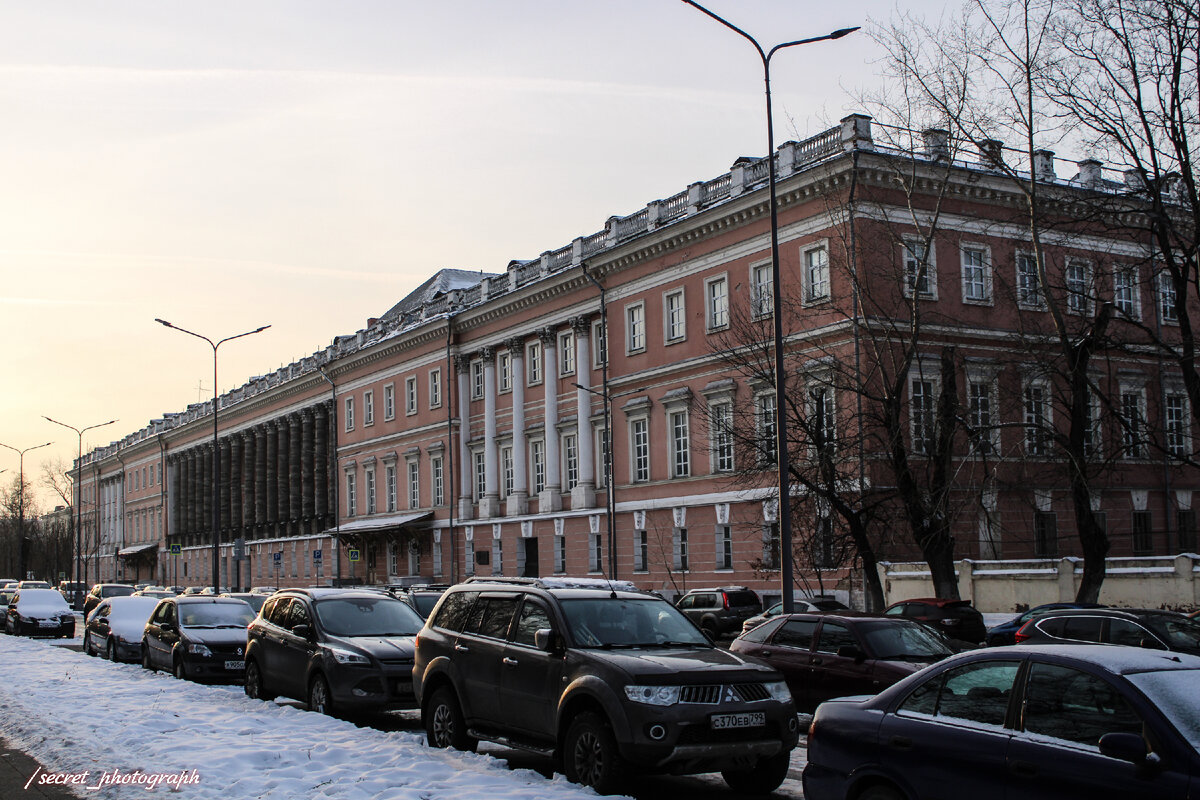 Это строение до сих пор принадлежит Министерству Обороны. Сегодня в нем располагается Общевойсковая академия Вооруженных сил РФ, и вход простым гражданским туда заказан. Но – можно осмотреть снаружи.