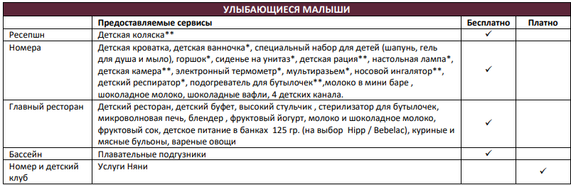Услуги для отдыхающих с детьми, предоставляемые в Voyage Belek