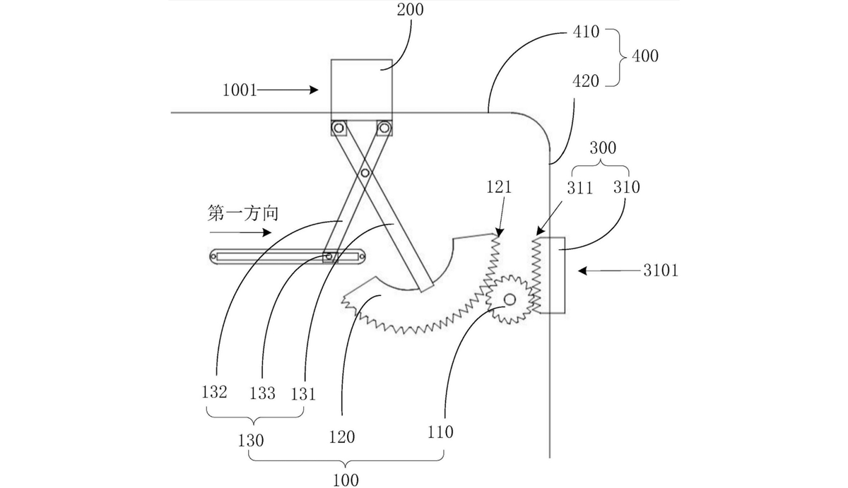 - выезжающий механизм, который подключен к выходному концу питания и используется для перемещения модуля камеры между первой и второй позициями.