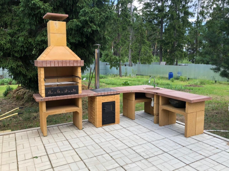 Если тротуарной плитки нет, беседки тоже нет (или просто занята уже), асфальта нет и вокруг только "земля-матушка", то лучше всего поставить печи на основания от нашей компании
