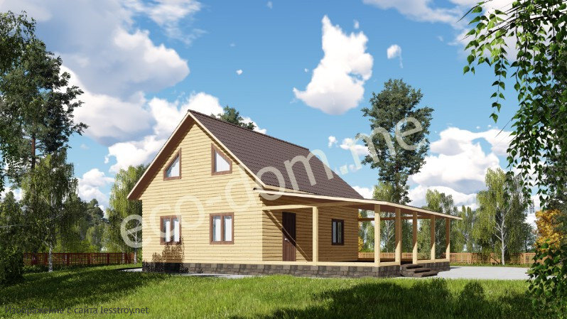 Дом из бруса ДБ-135 от строительной компании "ЭкоДомМне". Площадь застройки: 11 x 9 м, Общая площадь: 156,38 м2, стоимость: от 1 015 344 руб. Комплектация: под крышу. В состав стоимости входит: Материалы: Брус 150х150 мм наружные несущие стены первого этажа;
