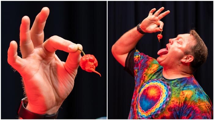 Мужчина съел десять самых острых перцев в мире за 33 секунды и попал в Книгу рекордов Гиннесcа