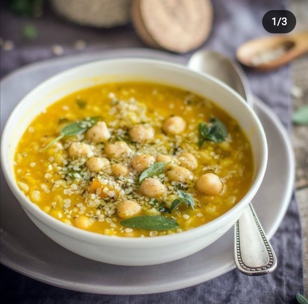 Очень вкусно, полезно и совершенно не сложно в приготовлении!!!! -400г тыквы,нарезанной маленькими кубиками (именно маленькими, тогда будет вкуснее) -400г сваренного нута ( можно из банки) -150г замороженного шпината -1 луковица -2 лавровых листа -оливковое масло -сливочное масло -1,5 литра кипятка -соль крупная -черный перец Теперь все предельно просто. Кипяток должен быть под рукой . В кастрюлю кладем кусочек сливочного масла и добавляем оливковое , нарезанный мелким кубиком лук. Пассируем на медленном огне 10 минут, не жарим, а пассируем!!!! Далее очередь тыквы, смешиваем с луком, заливаем кипятком и варим 10 минут. Далее нут,шпинат,лавровые листики,соль,перец. Добавляем еще кипяток ,накрываем крышкой и варим 15-20 минут. Вынимаем лавровые листочки и варим без крышки еще 15 минут. Идеально при подаче добавить натертого сыра и капельку оливкового масла !