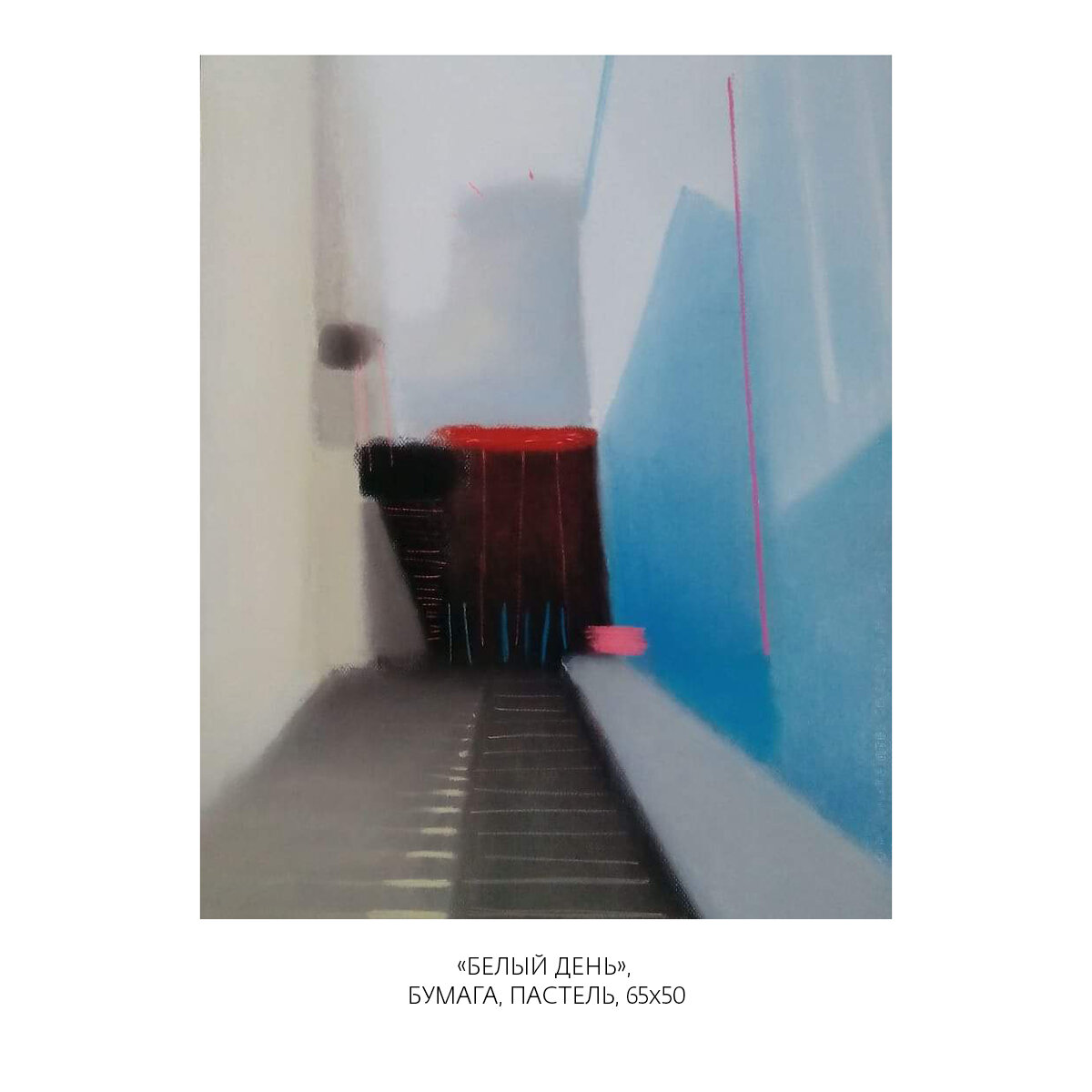 Сила воздействия цветового пятна ощущается в каждой работе Ольги Кошелевой. Ее чувственные пастели раскрывают магию места, погружают зрителя в многообразие архитектурных форм и пейзажных далей. Пустынные улицы лишены прохожих. Покой статичных плоскостей будто разбивается легким дуновением ветра и движением солнечного света. Зритель оказывается единственным действующим лицом. Оставаясь в моменте молчаливого созерцания, он полностью погружен в свои ассоциации. Они растворяются в мареве цветовых переходов, как видений, впитывающих личные переживания смотрящего. Фактурная поверхность листа уводит изображение в мягкую растушевку, что создает впечатление призрачного, ускользающего воспоминания. Это томные грезы, из которых возникает лестница “Белого дня”. Залитый солнцем “Берег весной” расслаивается контрастными кобальтовыми тенями. Смазанные контуры силуэтов в работах “Кипарис и город”, “Полдень”, “Черная гора” приводят к обобщению форм, которые разбиваются резкими ударами яркого контрастно