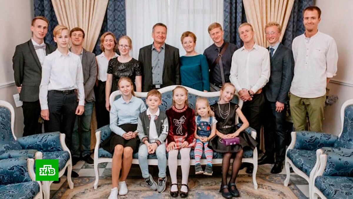 [ Смотреть видео на сайте НТВ ] История семьи Ирины Скрипко будет внесена в памятную книгу Московского района. Об этом сообщил глава администрации Владимир Ушаков. Несколько дней назад президент Путин присвоил Ирине Скрипко звание «Мать-героиня». Такого же звания удостоились еще шесть россиянок. Ирина вместе с супругом Александром воспитали 13 детей: девятерых сыновей и четырех дочерей. Самому старшему 38 лет, младшей — 15. По профессии Ирина Скрипко врач-эпидемиолог. Для нее это уже не первая награда. 13 лет назад вместе мужем Александром она была награждена орденом «Родительская слава», а в 2018-м Скрипко стали победителями всероссийского конкурса «Семья года». Звание «Мать-героиня» было учреждено 15 августа 2022 года. Им награждается женщина, родившая и воспитавшая десять и более детей. Вместе со званием Ирина Скрипко получила единовременную премию в размере одного миллиона рублей и орден, который по своему статусу немного уступает званию Героя труда Российской федерации. [ Смотреть