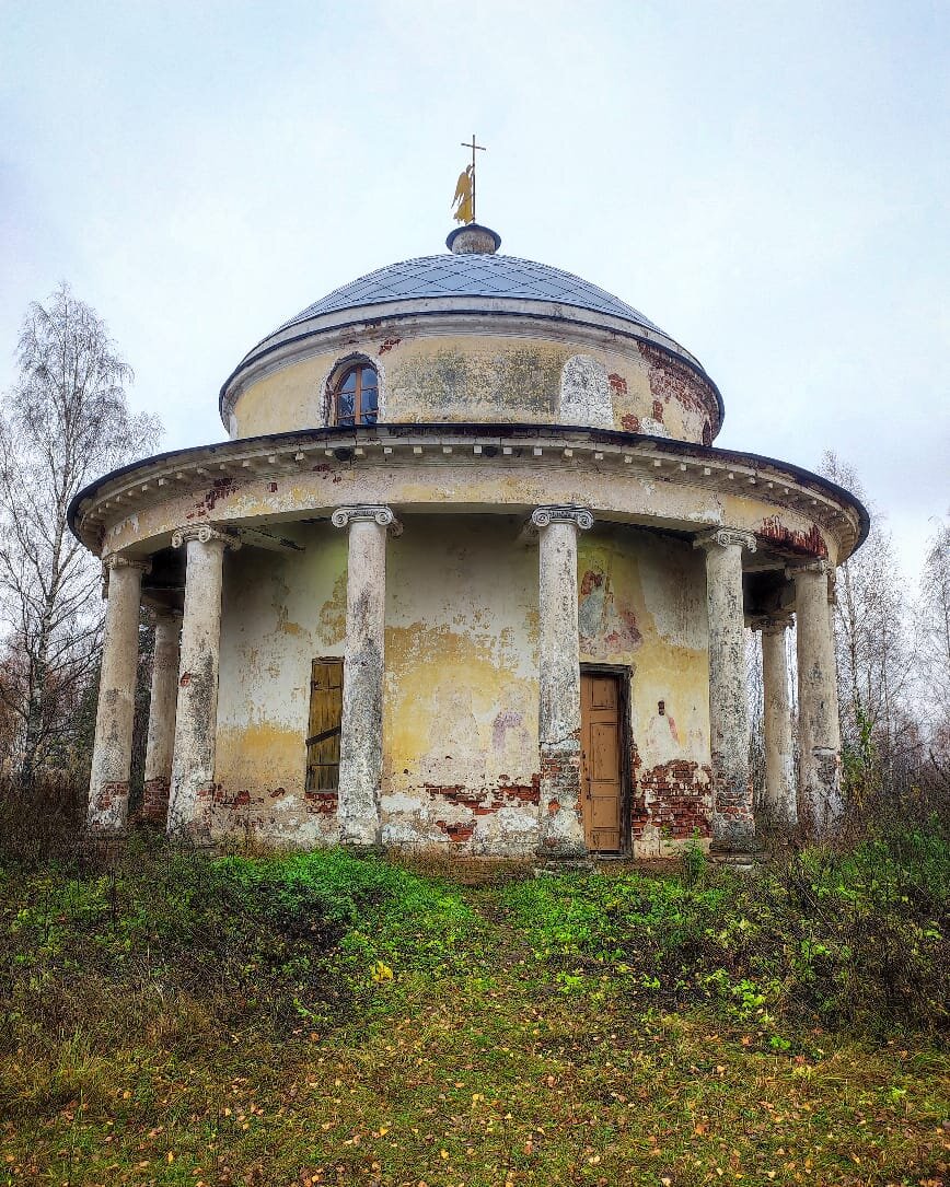 Недалеко от усадьбы Знаменское-Раек находится небольшая часовня в классическом стиле исполнения архитектуры Львова, похожая на античную беседку. Сюда мало приезжает туристов, а посмотреть здесь есть на что. Всё чаще мы видим в своих путешествиях, как год от года теряются фрески в храмах от изменения погоды и осадков. Конкретно в этой часовне потолок ещё достаточно крепкий, а двери в часовню последнее время всё чаще закрыты, что позволяет сохранить внутренние росписи стен. И хотя многие специалисты говорят, что это плохого качества копирование фресок Рафаэля в Ватикане, на дилетантский взгляд туриста они прекрасны. Оказываясь внутри часовни не покидает чувство радости и наслаждения от увиденного. А ведь в советское время в часовне хранили сено, некоторые лики святых были содраны, а у некоторых просто вытащены полностью кирпичи. Но всё, что осталось несомненно заслуживает восстановления и внимания туристов проезжающих мимо по трассе из Петербурга в Москву.