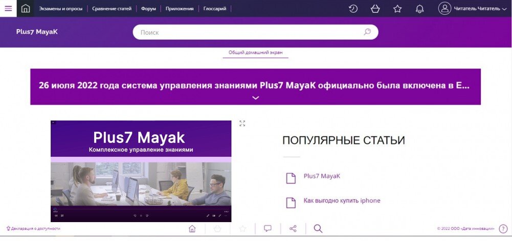 Как видим, Plus7 MayaK представляет собой зрелое решение для управления знаниями, которое может быть использовано в любой отрасли.