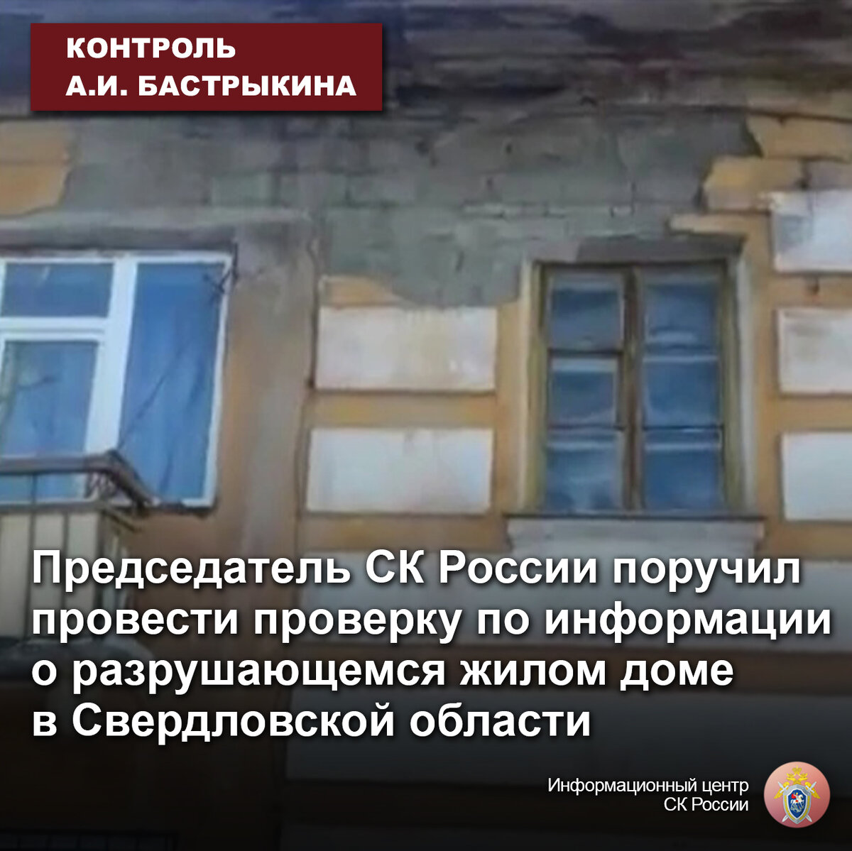 Председатель СК России поручил провести проверку по информации о разрушающемся жилом доме в Свердловской области