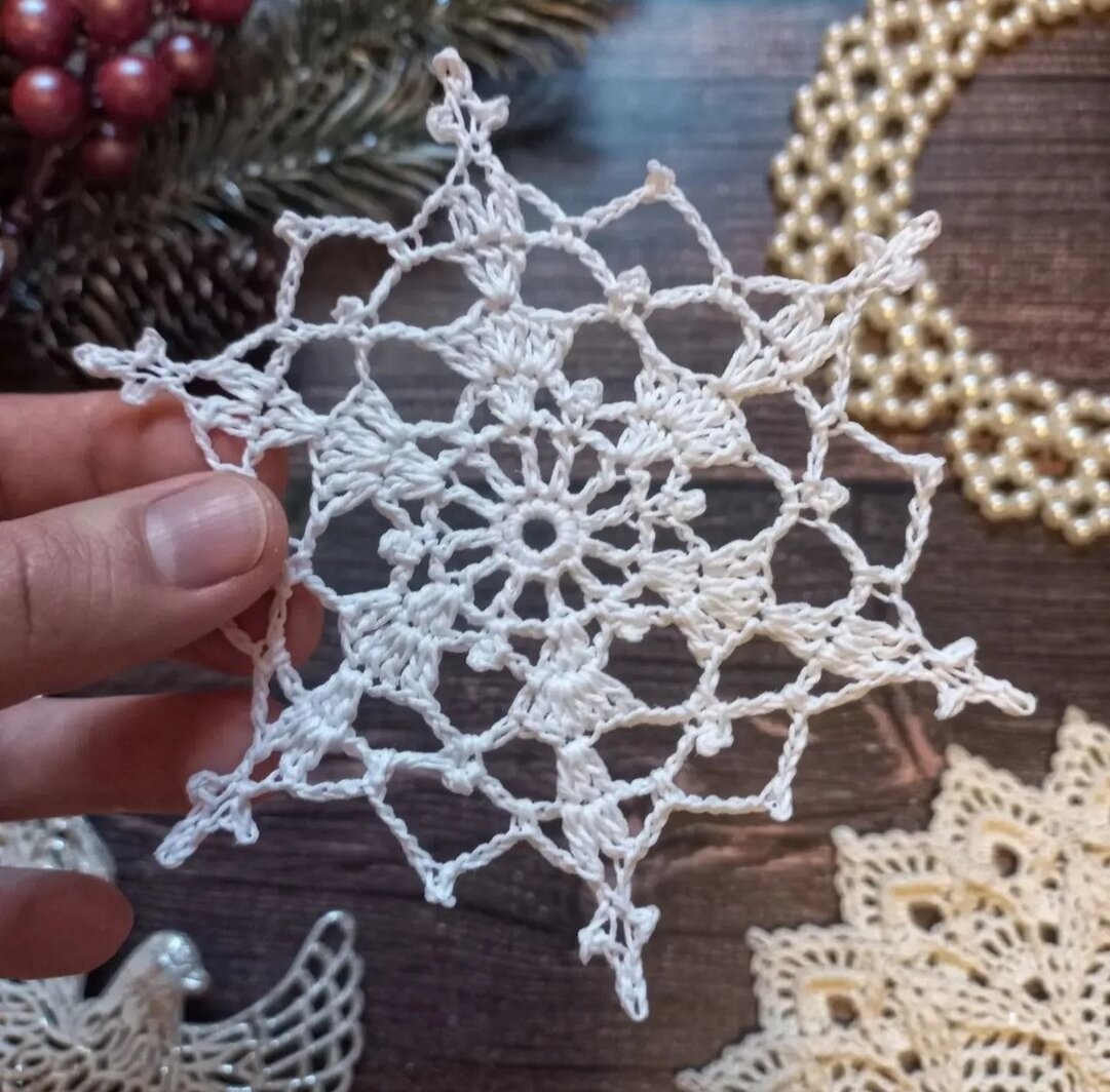 14 красивых снежинок. Простые схемы для вязания крючком. Новогодние украшения своими руками.