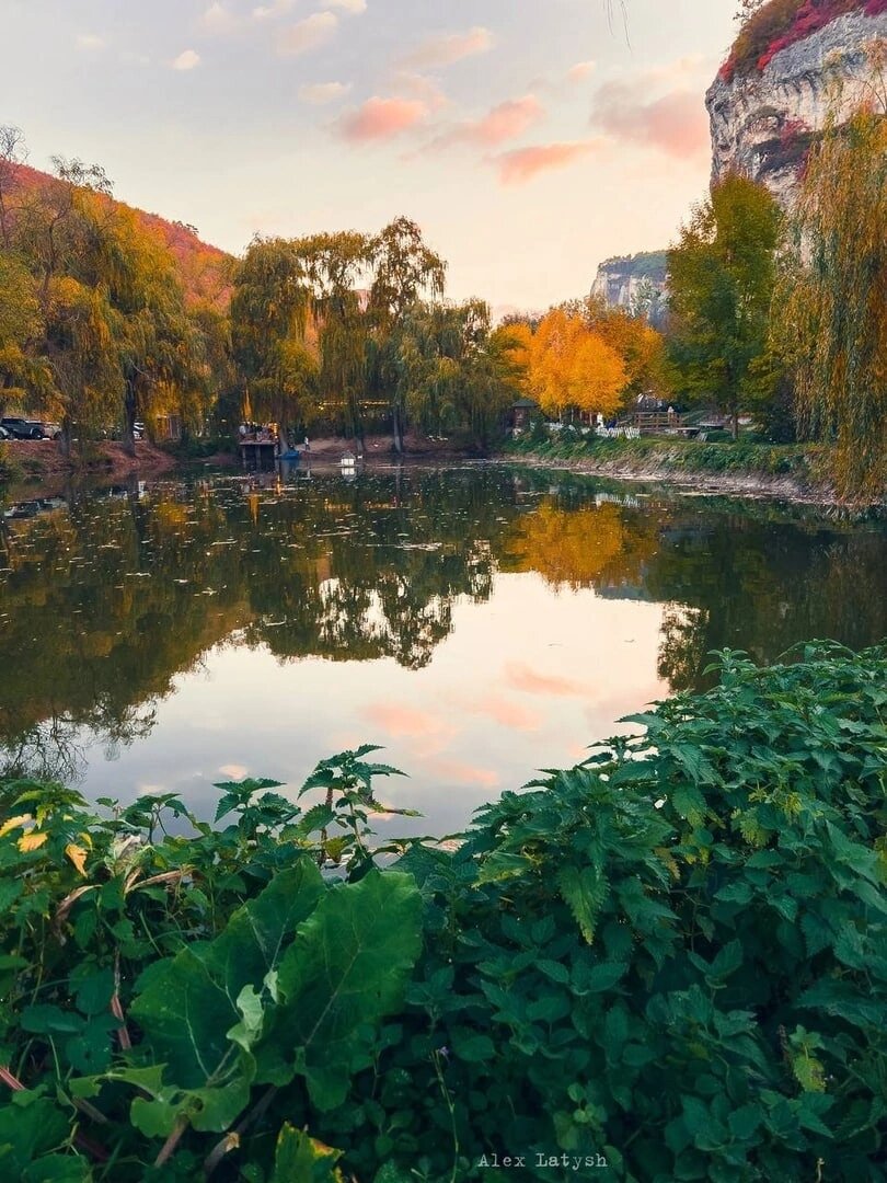 ‼️Секретное место в Залесном Здесь просто рай для фотографа – уже есть готовые фотозоны: замечательный пруд, окружённый скалами и большими пышными деревьями, уточки, лодка, огромные часы с подсветкой, капсула для романтического ужина… ❤️Если вы когда-нибудь будете проездом в Бахчисарайском Районе Крыма – обязательно остановитесь в этом сказочно красивом месте. 44.62030, 33.78880.