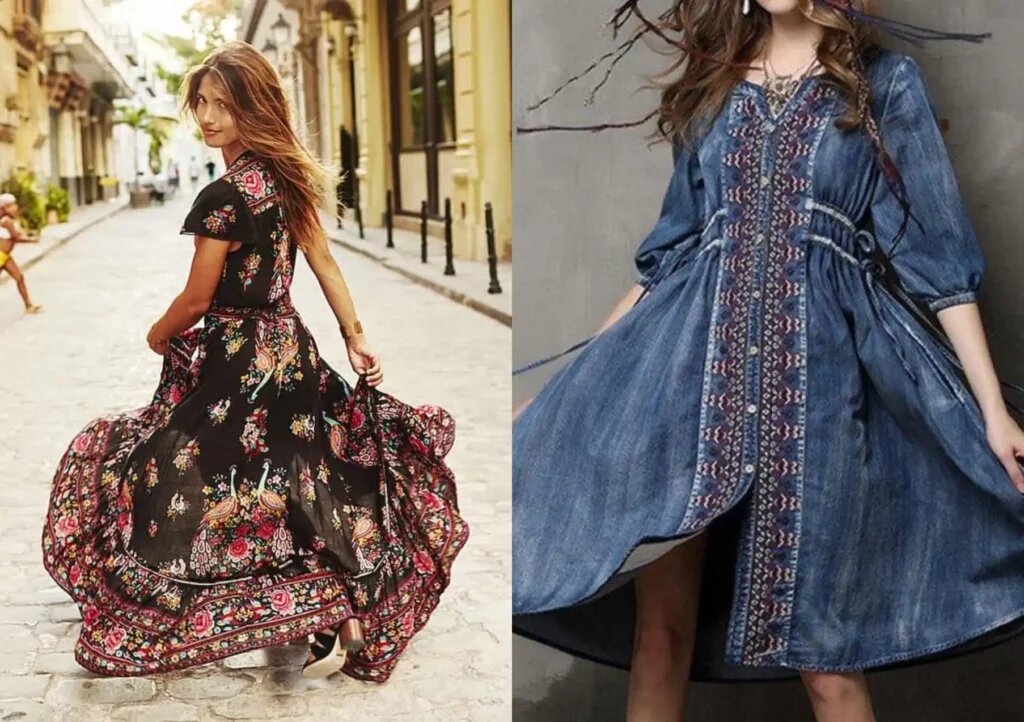 В многочисленных фасонах бохо вы обязательно найдёте наряд для различного рода мероприятий. Выбирайте платье, которое подойдёт вам по цветотипу и фигуре. В бохо нет чётких границ, поэтому большая часть платьев подойдет дамам с абсолютно разными формами. К примеру, на пышных дамах будут отлично смотреться длинные модели с завышенной талией или длиной миди ( средняя длина до колена или чуть ниже колена ). Для вечера лучше выбрать длинное платье (в пол ) из лёгких струящихся материалов.