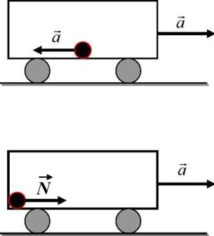 Примером неинерциальной системы отсчета является геоцентрическая система отсчета (жёстко связанная с Землёй) вследствие суточного вращения Земли. Однако максимальное ускорение точек поверхности Земли не превышает 0,5 %g, поэтому в большинстве практических задач геоцентрическую систему отсчета считают инерциальной. Рассмотрим два примера движения тел относительно неинерциальных систем отсчета (см. Рисунок 1). Здесь рассматривается система, состоящая из вагона поезда и шарика, который может двигаться без трения.