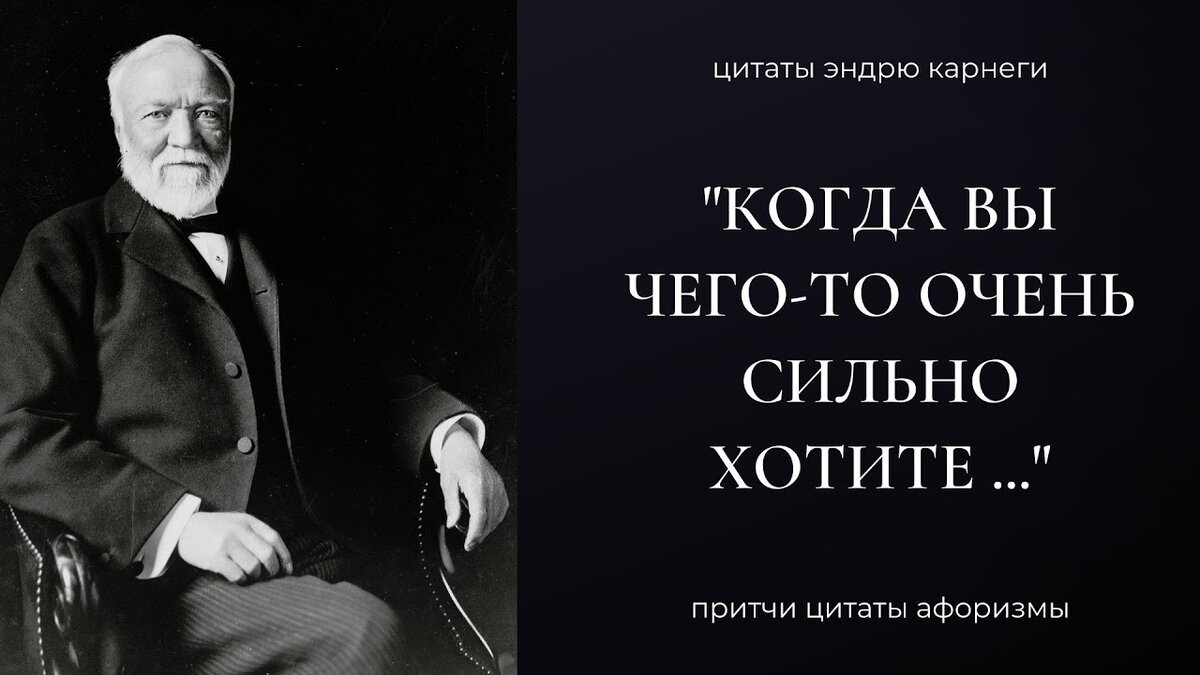 1. „Первый получает устрицу, а второй — ракушку.“ 2. „Никогда не пробьется наверх тот, кто не делает того, что ему говорят, и тот, кто делает не больше того, что ему говорят.“ 3. „Излишние богатства — это священное бремя, которое накладывает на своего обладателя долг распорядиться им в течение своей жизни так, чтобы эти богатства пошли на пользу обществу.“ 4. „Вы можете забрать у меня все мои заводы, все мои капиталы, всё, что я имею. Но оставьте мне пять моих лучших управляющих, и вы не успеете опомниться, как я снова буду впереди всех.“ 5. „Основной целью должна быть помощь тем, кто будет помогать себе сам. Ни отдельные личности, ни народ не станут лучше благодаря милостыне.“ 6. „Человек, умирающий богатым, умирает опозоренным.“ 7. "Концентрируйте вашу энергию, ваши мысли и ваш капитал. Мудрый человек кладет все яйца в одну корзину и внимательно наблюдает за ней" 8. "Среднестатистическая личность вкладывает только 25 процентов своей энергии и способностей в работу. Мир снимает