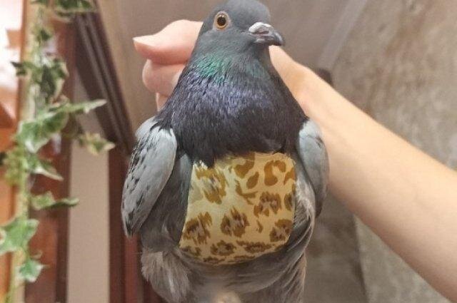 Жительница Новосибирска сшила леопардовый подгузник для голубя Валеры