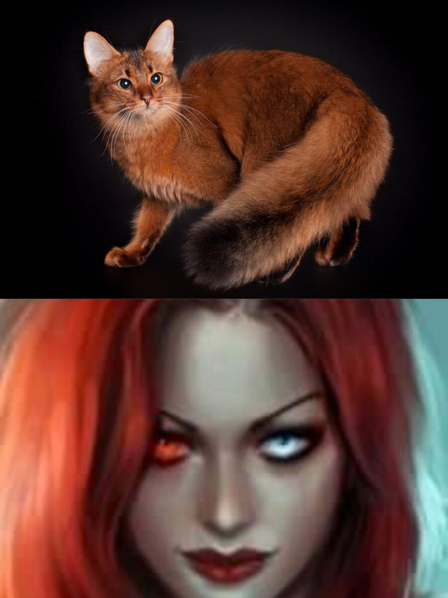 На фото сомалийская кошка - белка. Получила название из - за похожего окраса и пушистого хвоста.