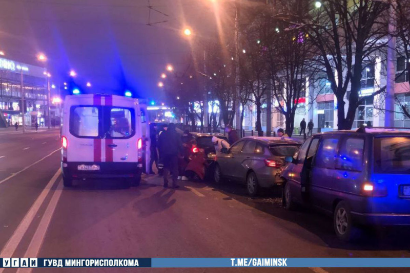 Минувшим вечером на улице Немиге произошло ДТП, а потом и второе, закончившееся травмами водителя. По предварительной информации столичной ГАИ, примерно в 20 часов 30 минут водитель автомобиля Lada, двигаясь по улице Немиге со стороны улицы Городской Вал, из-за несоблюдения безопасной дистанции столкнулся с остановившимся впереди автомобилем Volkswagen.