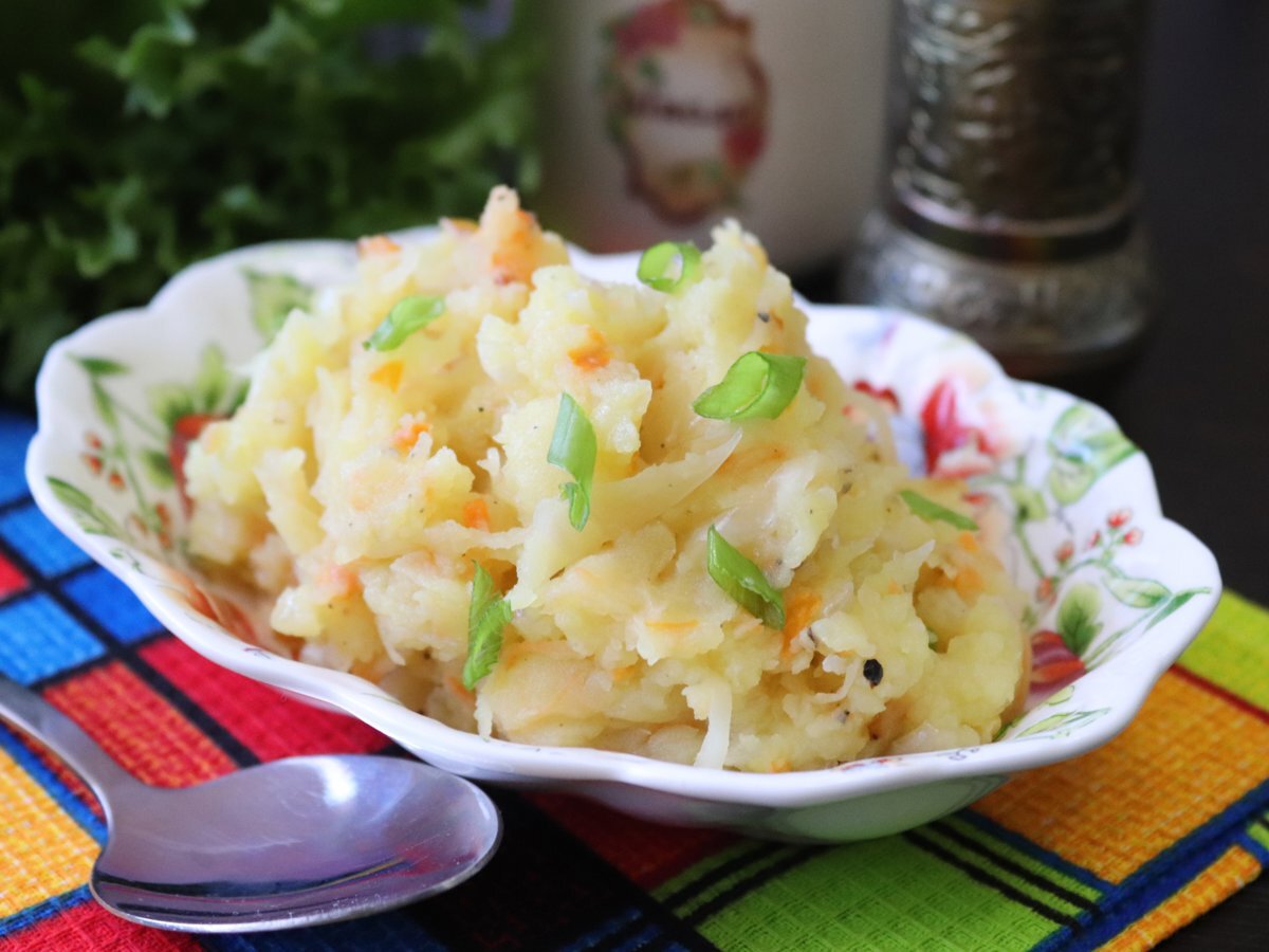 Сытное, простое и вкусное блюдо для ужина по домашнему с семьёй. Это постное картофельное пюре с обжаренными овощами хорошо само по себе, ну а кто не мыслит еду без мяса, может положить котлетку или гуляш. Ингредиенты Приготовление: 1. Подготовить ингредиенты для картофельного пюре. Овощи почистить и помыть. 2. Лук и морковь измельчить. Обжарить на растительном масле до легкой золотистости. 3. Добавить отжатую от сока квашеную капусту. Если капуста очень кислая, то её лучше промыть водой и отжать. Прогреть на сковороде лук, морковь и капусту вместе ещё 5 минут. 4. Картофель почистить, крупно нарезать и сварить. Из вареной картошки приготовить пюре, размяв толкушкой. 5. В картофельное пюре выложить из сковороды обжаренные овощи. 6. Перемешать, по вкусу посолить и поперчить. 7. Подать на стол, посыпав измельченной зеленью.