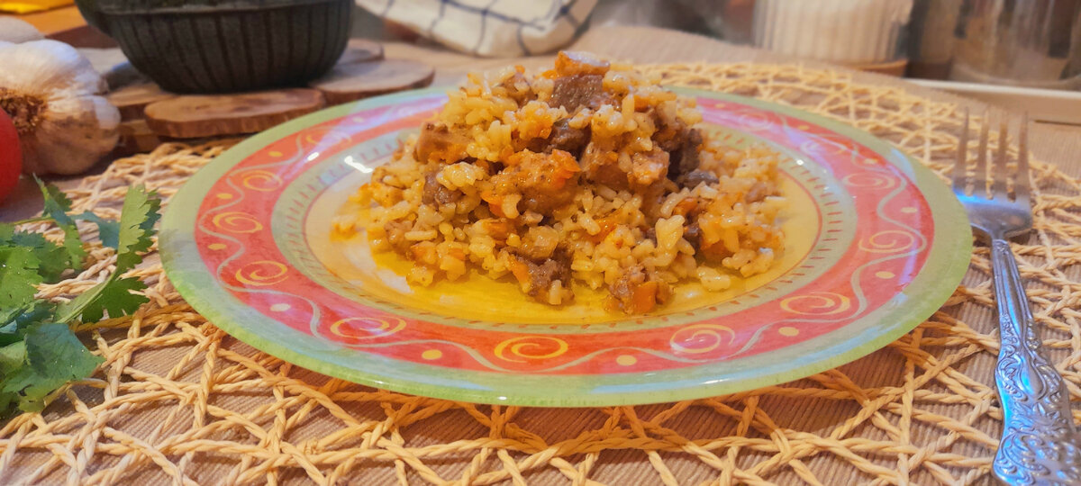 Ингредиенты: ○ Вода - 0,5 л ○ Рис - 400 г ○ Филе говядины - 250 г ○ Филе бедра куриное - 250 г ○ Морковь - 200 г ○ Лук репчатый - 100 г ○ Масло подсолнечное - 75 мл (3 стол. ложки) ○ Соль - 1 стол. ложка ○ Куркума - 0,5 чайной ложки ○ Паприка - 0,5 чайной ложки ○ Чеснок сушеный - 0,5 чайной ложки ○ Перец чёрный молотый - на кончике чайной ложки Приготовление: 1. Хорошо помоем овощи и мясо. Овощи очистим от кожуры. 2. Нарезаем лук репчатый небольшими кубиками, морковь - соломкой, мясо кусочками 1,5 - 2 см. 3. В чашу мультиварки наливаем подсолнечное масло. И кладём нарезанные лук и морковь. Добавляем специи. Пассируем несколько минут, помешивая лопаткой. 4. Добавляем нарезанное мясо и помешивая, тушим несколько минут. 5. Кладём соль, перемешиваем, засыпаем рис и заливаем горячую воду. 6. Закрываем крышку мультиварки. Включаем режим Рис. 7. Готовый плов хорошенько перемешиваем. Подаём в красивой тарелке. #вкусныйужин #блюдасрисом #пловсговядинойикурицей