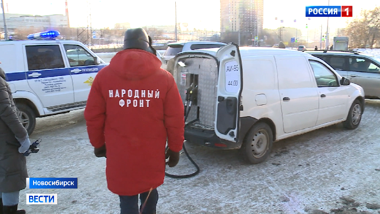 Неприметная белая машина на окраине Новосибирска без баннеров и логотипов с ценником на дверях ─ нелегальная АЗС. По словам полицейских, паркуется на одном месте не одну неделю. В салоне ─ пластиковые канистры с горючим, снаружи ─ пара шлангов. Литр бензина продают на несколько рублей дешевле, чем в среднем на рынке. То, что 92-й и 95-й, похоже, льют из одной бочки, не афишируют. Документы и сертификаты у продавцов отсутствуют, качество продаваемого топлива не знают. Представители регионального отделения Общероссийского народного фронта в течение года пытаются побороть нелегальный бизнес. Уверены, передвижные заправки ─ не просто откровенный обман водителей, но и бомба на колесах. Эксперт бюро расследований Народного фронта Александр Стефанов отметил, на машине нет заземления, элементарных средств пожаротушения, таких как огнетушитель, песок. У сотрудников районной администрации с нелегалами разговор короткий: контрольная закупка, административный протокол, эвакуатор. Таких заправок