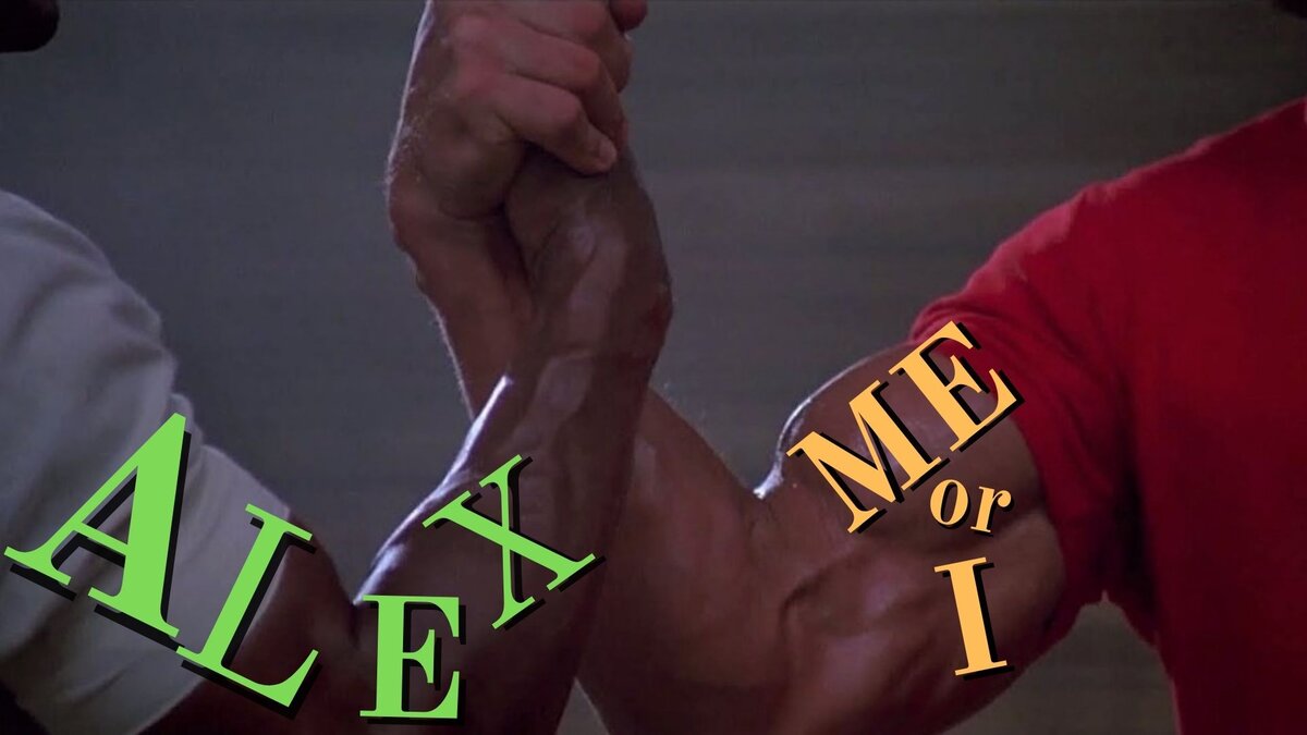 "Alex and I are going to the store. - Алекс и я идем в магазин." В каждом из этих предложений "I", "Alex", "Alex and I" являются подлежащими. Обратите внимание, что подлежащим может выступать местоимение или существительное, как в единственном, так и во множественном числе. Alex and me "Alex and me" - правильный выбор для предложения, в котором фраза "Alex and me" является дополнением (часть речи, которая обозначает предмет или лицо над которым производит действие сказуемое (глагол)).