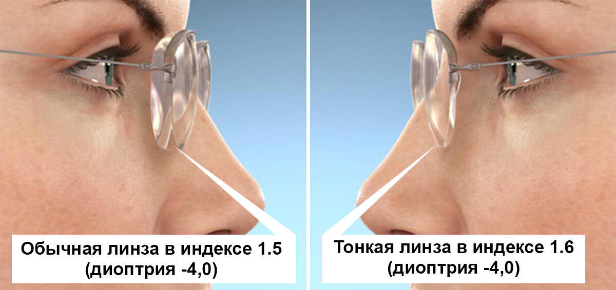 - 2) Асферические- передняя поверхность отклоняется от формы сферы , задняя же является более плоской. В результате такие линзы легче и тоньше сферических, что позволяет изготавливать очки с ними эстетичнее по внешнему виду. Кроме того , для выполнения таких линз потребуется меньше материала , это означает , что очки буду легче. Они наиболее актуальны при коррекции высоких степеней нарушения рефракции .