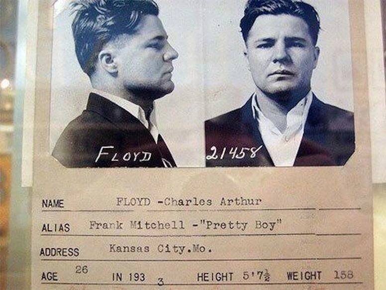 Этого человека зовут Чарльз Артур «Красавчик» Флойд (3 февраля 1904 — 22 октября 1934) — американский грабитель банков начала 30-х годов, «враг общества номер 1» по классификации ФБР. Он старался создать себе образ американского Робин Гуда. Он никогда не скрывал своего лица, заходя в банк, и всегда был вежлив, но при каждом ограблении сжигал все закладные бумаги, освобождая сотни людей от выплат по ипотечным кредитам. За это он стал народным любимцем и получил прозвище «Красавчик Флойд».А в 1939 году Вуди Гатри написал «Балладу о красавчике Флойде» (The Ballad of Pretty Boy Floyd), которая впоследствии исполнялась многими другими певцами и группами.
