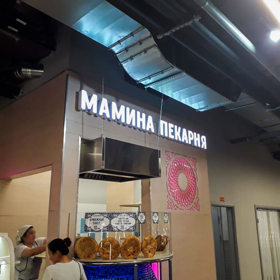 Компания Медиаград произвела и смонтировала под ключ полный комплект вывесок в виде интерьерной и наружной рекламы для пекарни "МАМИНА ПЕКАРНЯ".