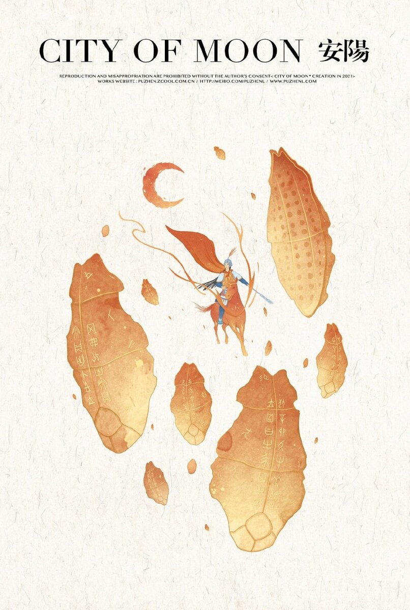 Иллюстратор Puzhen выпустил серию изображений City of Moon (Город луны), на которых символично представил 100 городов Китая. В его работах присутствуют отсылки к историческим событиям и культурным явлениям, которые прославили тот или иной населённый пункт Китая. В статьях на своём канале я буду раскрывать для вас "тайные" смыслы этих изображений. Предыдущий разбор: Аньян Аньян (安阳) — город в провинции Хэнань, имеющий очень древнюю историю. Раскопки показали, что на территории современного Аньяна находилась столица государства Шан (1562—1027 гг. до н. э.). Местоположение древней столицы (Иньсюй, развалины Инь) охраняется ЮНЕСКО. В иллюстрации Аньяна художника Puzhen мы видим два символа: черепашьи панцири с иероглифами и женщину-воительницу посередине. Иероглифы на панцирях — это гадательные письмена (цзягувэнь, письменность на костях и черепашьих панцирях). Именно в Аньяне в 1899 г. были впервые найдены и изучены такие гадательные "таблички". Последующие раскопки в царских гробницах с