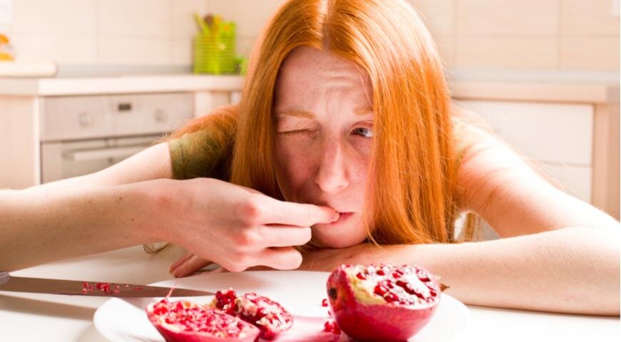 Нежелательно давать гранат маленьким детям из-за риска проглатывания косточек – это может вызвать проблемы с пищеварением и стулом. Ничем другим эта рекомендация не объясняется, поэтому гранатовый сок в детском питании разрешен. Гранат может быть противопоказан людям с нарушением всасывания фруктозы – из-за недостатка ферментов, расщепляющих фруктозу, они могут испытывать симптомы кишечного расстройства. То же самое касается людей с непереносимостью углеводов FODMAP, синдромом раздраженного кишечника, синдромом избыточного бактериального роста в кишечнике, колитами и другими заболеваниями пищеварительного тракта. При гастрите с повышенной кислотностью и язве желудка гранат и гранатовый сок могут ухудшать состояние, так как содержат большое количество кислот. Людям с диабетом следует осторожно относиться к гранату из-за высокого содержания сахаров. Людям с проктологическими заболеваниями (геморрой, криптит, свищи прямой кишки) желательно заменять цельный гранат свежим гранатовым соком