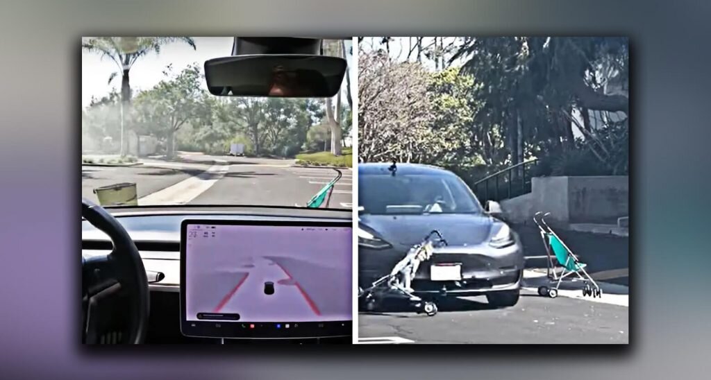 Tesla не прошла тест и сбила детскую коляску. Результаты проверки показали на видео