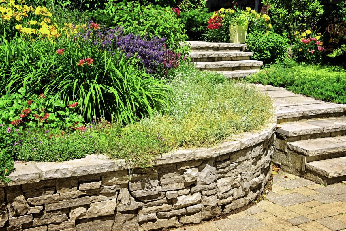 Подпорная стенка это один из самых важных элементов в ландшафтном строительстве, и сегодня мы вам расскажем, что же это такое и как это сделать. Подпорная стенка — это элемент в ландшафтном дизайне, который позволяет нам дополнить участок разными акцентами и новыми элементами (например, цветником и т.д.), а также позволяет убрать неровность или наоборот при необходимости добавить. Сейчас мы с вами разберем подпорную стенку из природного камня. Для таких стенок используют четыре вида камня: 1. Песчаник 2. Гранит 3. Сланец 4. Базальт Мы разберем самый часто используемый, это песчаник. Стенка из песчаника, это лучший вариант для загородных участков в России по ряду причин: 1. Простота возведения 2. Этот вариант стенки не дорогой 3. Для возведения не нужна специальная техника 4. Такой стенке не нужен дренаж Начнем с того зачем она нужна и какой она будет высоты. 1. Нужна она чаще всего чтобы убрать неровность на участке, а также в некоторых случаях она позволит сделать акцент на том что ва
