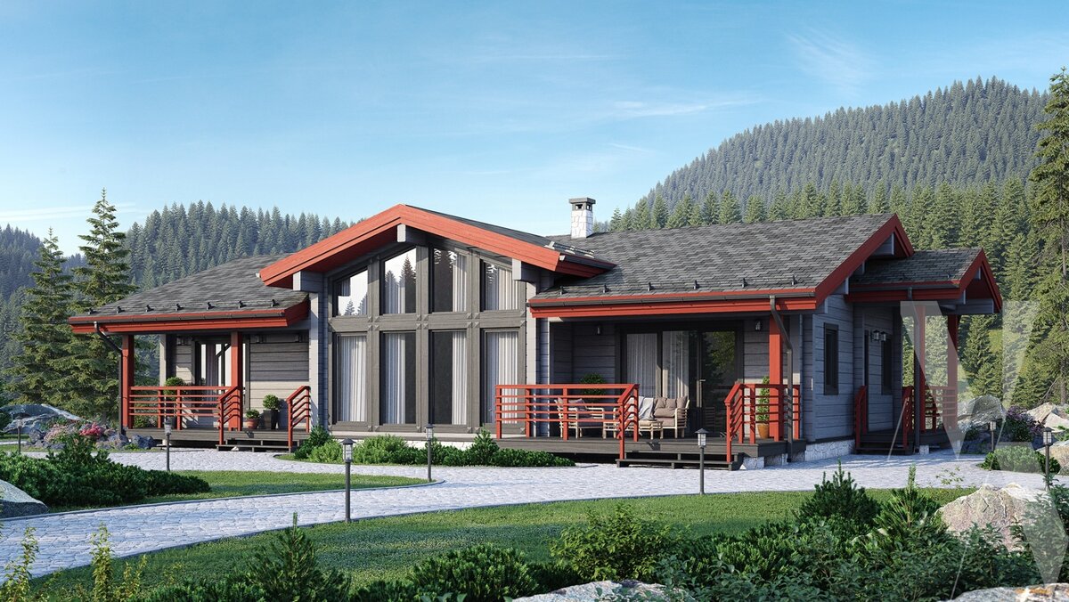 Общая площадь: 136 кв.м., размеры дома: 18 x 11 м. Всех приветствую, дорогие друзья! С Вами, как всегда потрясный, архитектор Номернаби́с. Побывав в Скандинавии меня поразила величественная красота её северной природы с зеркальными поверхностями озёр, каменистыми склонами, вечнозелёными лесами, а также суровый климат, заставляющий жить в постоянной готовности к борьбе со стихией. Здесь температура наверное не меньше -200, где-е-е любимые тёплые песочки? Видимо это и определило характер скандинавского архитектурного стиля. Сдержанно-практичный, но в то же время безукоризненно элегантный, зародившийся на территории нынешних Швеции, Дании, Норвегии и Финляндии, этот стиль весьма самобытен. И вот он - скромный, но очень элегантный скандинавский дом из клееного бруса. Помимо броской цветовой гаммы и приземистого горизонтального силуэта, запоминается общей простотой и цельностью формы, а также большой центральной витражной группой. Ну не прелесть ли? Даже менять почти ничего не хочется. Раз