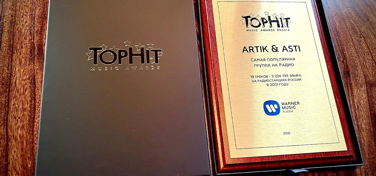 Таковы результаты, опубликованные по итогам вручения музыкальной премии TopHit Music Awards Russia 2021-2022. Интернет-портал TopHit обнародовал списки победителей по результатам ежегодного мероприятия. Сама церемония должна была пройти в российской столице, но в связи с ситуацией в стране и мире ее решили в этом году не делать публичной. Об этом сообщает Tophit.ru. Итак, артистами, которых чаще всего ставили в ротации на радио стали Артик и Асти, Юлия Зиверт, Дима Билан, а также дуэт Filatov & Karas. Песня "Венера – Юпитер" в исполнении Вани Дмитриенко стала самым ротируемым хитом на русском языке. Продюсер TopHit Music Awards Павел Балашов рассказал журналистам, что номинанты-победители награждаются специальными табличками. У самых востребованных артистов таких трофеев скапливается довольно много, и стена с наградами становится похожа на иконостас. В этот раз, учитывая ситуацию, памятные таблички артистам доставляли в офис, и вручали лично. Победители музыкальной премии TopHit Music