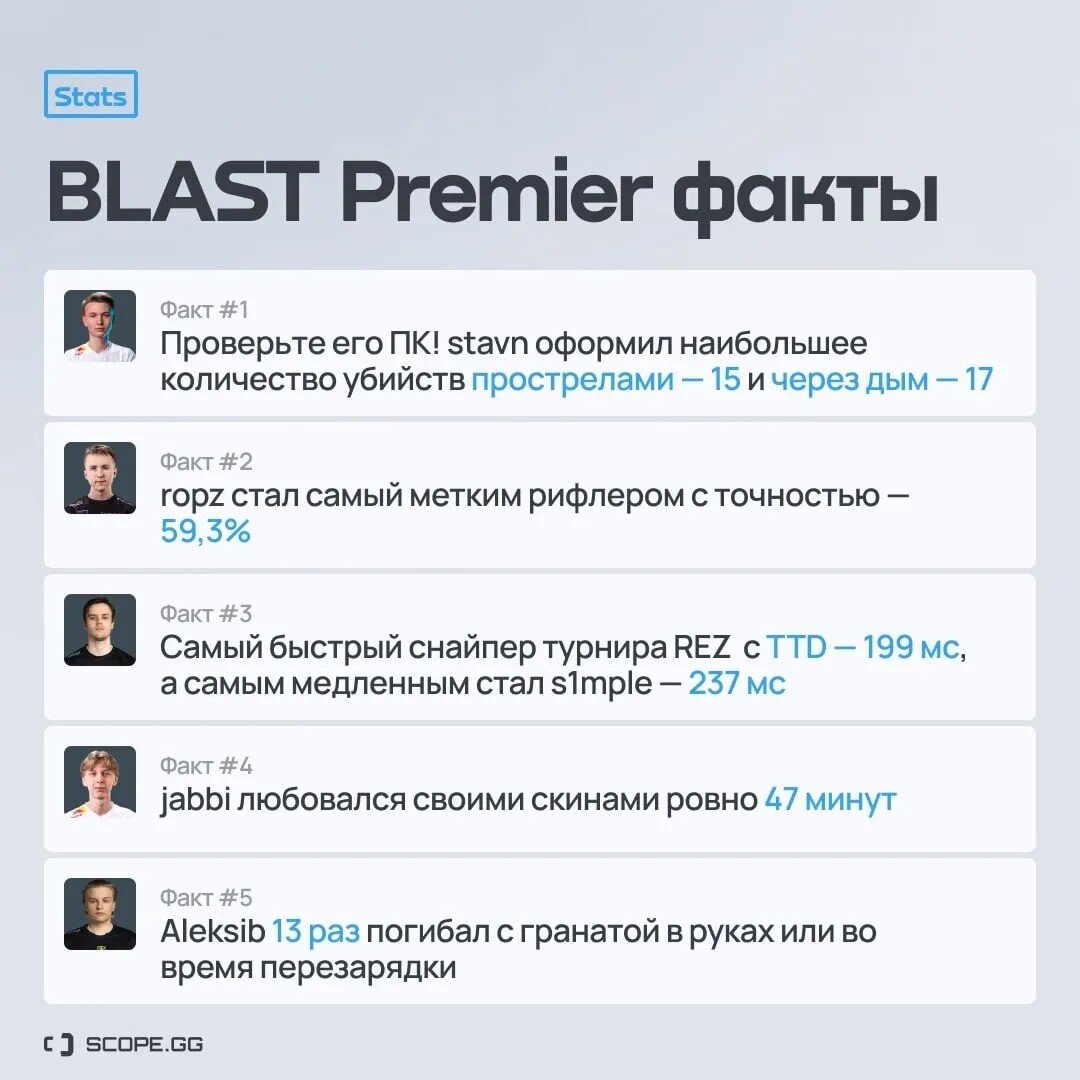 Снайпер состава NAVI по CS:GO Александр s1mple Костылев оказался самым медленным игроком с AWP на BLAST Premier: Fall Finals 2022. Статистику турнира представил портал Scope.gg. Согласно данным, Симпл стал игроком с самым большим TTD (Time to Damage) — это время с момента, когда игрок заметил соперника, до нанесения урона. S1mple показал худший результат среди всех снайперов турнира — украинский киберспортсмен тратил на выстрел 237 мс. Лучшим по этому показателю стал игрок Ninjas in Pyjamas Фредрик REZ Стернер — у него на выстрел с AWP уходило в среднем 199 мс. Редакция Scope.gg подготовила и другие интересные факты о прошедшем турнире — их можно увидеть на картинке ниже. Источник фото: Scope.gg Заглавное фото: WePlay