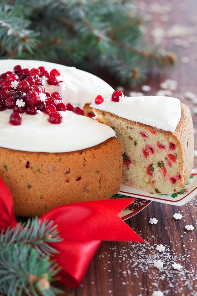 Классический ванильный кекс прекрасно сочетается с клюквой и фисташками, а тягучая глазурь из творожного сыра сверху привносит в десерт больше сладости и чуточку новогоднего настроения Новый год стремительно приближается, а вместе с ним и всевозможные вкусности, которыми так приятно побаловать себя во время наступления холодов. Если вы устали от привычных покупных тортиков, то есть прекрасная возможность приготовить для себя что-то вкусненькое самостоятельно. К примеру, необычный новогодне-рождественский кекс с приятной кислинкой внутри и небольшим сюрпризом. Приготовить его не сложнее, чем нарезать ингредиенты для оливье! Пошаговый рецепт Ингредиенты