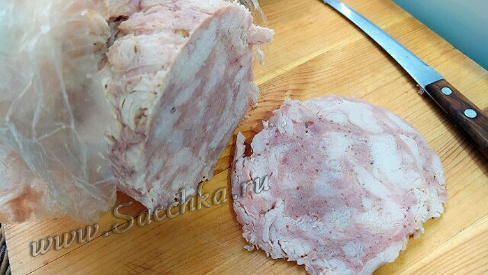 Домашняя ветчина приготовлена из курицы в ветчиннице. Сванская соль - смесь специй, используемая в грузинской кухне. Она состоит из не менее восьми компонентов: соль, чеснок, уцхо-сунели, семена кинзы, укропа и тмина, острый красный перец красный и имеретинский шафран. Ингредиенты: Как приготовить: И еще: