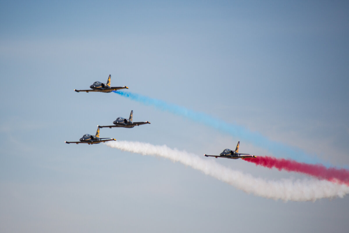 В этом году авиачасть парада на территории всей Российской Федерации была отменена. Но в одном уголке нашей величайшей страны таки состоялось показательное выступление. Да не одно, а сразу четыре. Пилотажная группа "РУСЬ", принадлежащая ДОСААФ, выступала на Урале! Первым городом вылета был Кировград. Выступление состоялось утром и рёв реактивных двигателей зарядил местный народ на позитивное настроение на весь праздничный день. Самолёты пилотажной группы выписывали невиданные доселе зрителям фигуры высшего пилотажа. При каждом маневре сердце замирало от восторга. Ведь порой расстояние между крылом одного самолёта и фюзеляжем другого составляет менее одного метра! После выступления над Кировградом группа вернулась на аэродром базирования, у лётчиков был короткий отдых и ожидало второе выступление, днём, в пригороде Екатеринбурга - Верхней Пышме. Немного передохнув перед этим выступлением, асы заняли свои места в кабинах пилотажных самолётов L-39, и выдвинулись в сторону точки выступлен