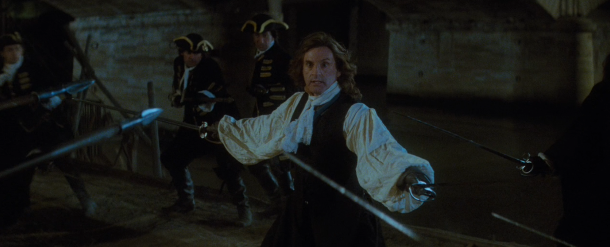 Думаю, заслуга принадлежит мэтру французского кино Филиппу де Брока, который отлично чувствовал условности жанра. Его карьера начиналась в золотой век "плаща и шпаги", и в 1962-м де Брока поставил костюмную авантюрную ленту "Картуш", ставшую классикой 60-х.