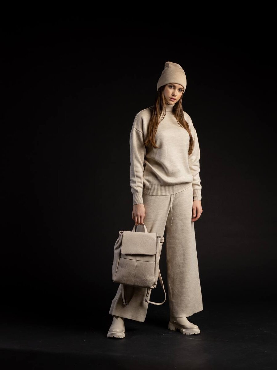 Особенно актуальный для сезона осень-зима 22/23 трикотажный брючный костюм. Подходит как для вечерней прогулки или работы в офисе, так и для ужина в ресторане. Изготовлен из качественной турецкой пряжи, хорошо держит форму и не мнется. Надолго сохранит свой первоначальный вид, если соблюдать рекомендации по уходу. Состав пряжи: 70% акрил, 20% хлопок, 10% шерсть. Длина свитера 60 см, ширина - 52 см, длина рукава - 69 см. Модель – оверсайз со спущенной линией плеч. Можно носить отдельно от комплекта. Дополнив его трикотажной юбкой получится хороший повседневный образ. Также подойдут любые брюки. Длина брюк 103 см, обхват талии – 29 см, ширина штанины – 34 см. Широкие брюки-палаццо делают ноги стройными и длинными. Можно носить отдельно с водолазкой или кардиганом. Образ становится женственнее и утонченнее, если надеть высокие каблуки. Более спортивным и дерзким с грубыми ботинками или кроссовками на высокой подошве.