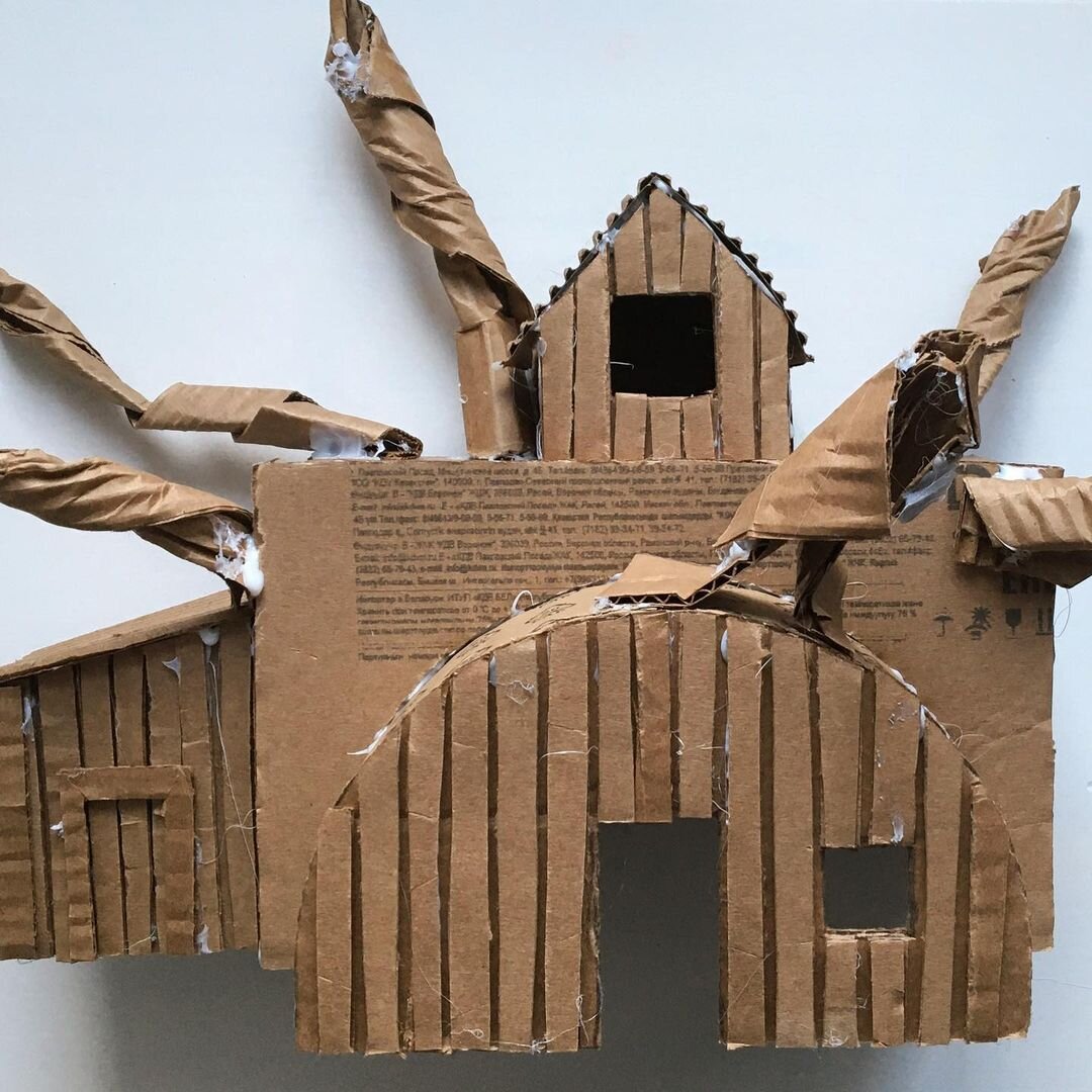 А Вы всё ещё выбрасываете картон? Стоите! Сначала посмотрите,что из него можно сделать ,ну, вот ,например, этот легендарный дом из любимого мультика "Маша и медведь"... . знакомство с этим сказочным мультиком мы начали ещё с маленькой четырёхлетней Сонечкой ( а ей, на минуточку, уже 17!!!) и вот мы его теперь смотрим с Васюшей... ой, как дежавю... Ведь и Васюша просто безумно влюблена в домик мишки... . А сейчас нас так поглотило творчество, что не сделать его просто грех... . И так... Что нам понадобилось 👇🏻👇🏻👇🏻 . - картон для основы, дома , ветвей, забора ... . -крафт-бумага и фольга для создания объема и формы... . - туалетная бумага, ну, чтобы все облагородить ... . - гуашь+ ПВА ( кто давно со мной, знают, что так я заменяю акрил... и совсем потом после высыхания поделки не пачкают ручки)... . _ клей для потолочных плиток... . - стержни для клеевого термопистолета ... . Сначала я сделала всю картонную основу , создала картонными полосками имитацию досок, скрутила каркасы ве