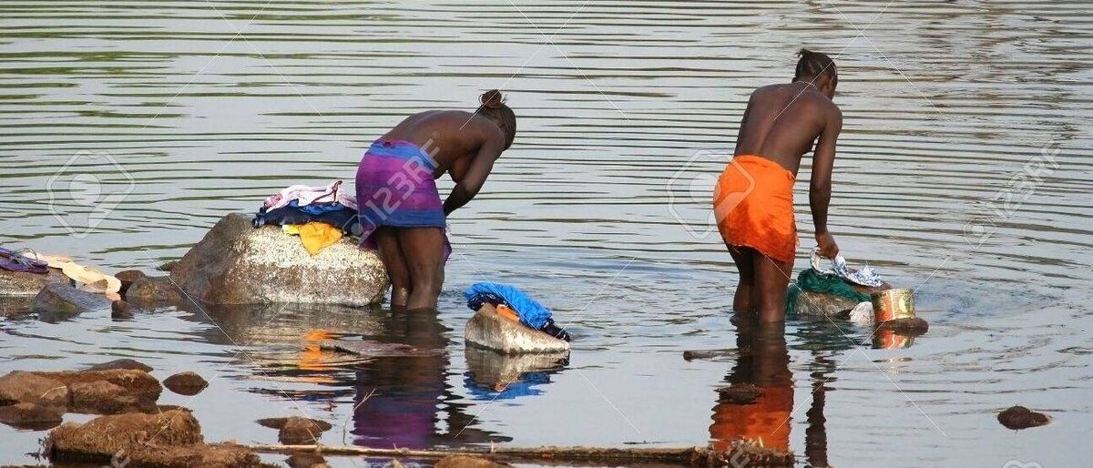 Африканки были на половину то ли одеты, то ли раздеты. Одни в материи на бедрах, заменяющую юбку, стирали белье.