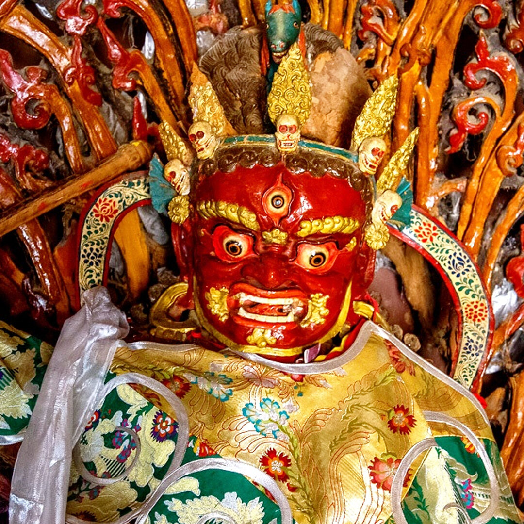 Дхармапала, сахюусан, срунма, тансун, чокьон, сунма, драгшед, чойджин, чхойкьонг, сахиус, धर्मपाल, dharmapāla, dhammapāla, ཆོས་སྐྱོང་, chos-skyong, Qögyong, 護法神, 护法神, hùfǎshén, хранитель, drag-gshed или докшит – это всё общие названия защитников – гневных божеств, защищающих веру и верующих. Многочисленные названия указывают на различия в нескольких религиях, многообразие направлений буддизма, а также зависят от культурных языковых кодов конкретного народа. Группа дхармапал, «ангелов хранителей», включает в себя идамов, дакинь и других божеств. Количество дхармапал варьируется, но наиболее почитаемыми среди защитников считаются: Махакала, Бегце, Палдэн Лхамо, Ваджрапани, Яма, Хаягрива, Ямантака. В классическом тибетском пантеоне к главным божествам-защитникам причисляют Пехара и Куберу, но в список восьми основных божеств у тибетцев не включается Ваджрапани. С Палдэн Лхамо (Шри Деви, Охин-Тэнгри и др.), женским трёхглазым божеством тёмно-синего цвета в тигровой юбке и короне из пяти че