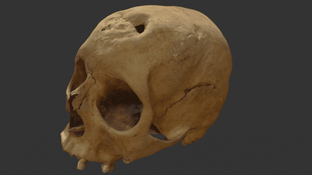 Реконструкция выполнена на основе останков молодой женщины, которая жила в XVI веке и умерла в возрасте от 25 до 30 лет. Ее останки были найдены в монастыре Скридуклаустур в Исландии. Заболевание третичным сифилисом было настолько серьезным, что даже на костях черепа остались следы повреждений, вызванных заболеванием. Череп и результаты реконструкции. Изображение: Cicero Moraes et al. Исследователи использовали сохранившиеся части черепа, чтобы реконструировать прижизненный облик женщины. Хотя нижняя челюсть черепа отсутствовала, ученые использовали 3D-модель в качестве ориентира. Они использовали маркеры виртуального черепа и тканей, чтобы воссоздать кривизну лица умершей женщины. На основе данных о развитии заболевания исследователи воссоздали «вихри» повреждений, тянущиеся по правой щеке женщины и подползающие к открытой ране на ее лбу. Светлые волосы — художественное дополнение, чтобы сделать облик более реалистичным. Реконструкция нижней челюсти. Изображение: Cicero Moraes et al.