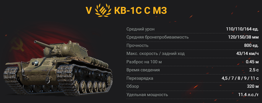 Огневая мощь. За хорошую скорострельность и бронепробитие КВ-1С с МЗ расплачивается невысоким средним уроном и достаточно большим разбросом на 100 метров (по крайней мере для подкалиберных снарядов). Вести стрельбу лучше на средних и коротких дистанциях: у подкалиберных снарядов повышенная бронепробиваемость и более высокая скорость, но они сильнее теряют в пробитии с расстоянием. Угол склонения орудия всего -5 градусов, поэтому старайтесь избегать холмов, гор и любых других наклонных поверхностей.