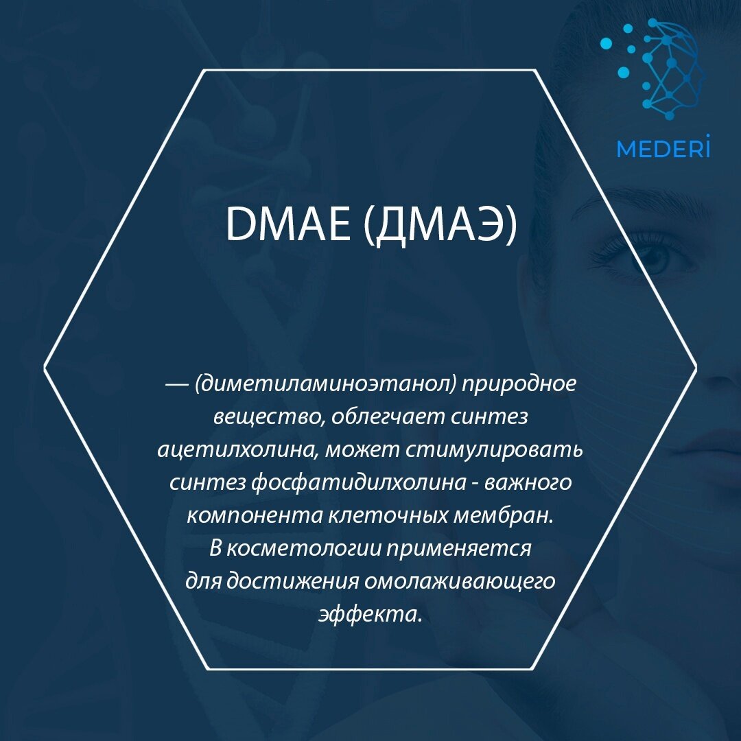 ДМАЭ – это проверенное временем истинно ноотропное средство со множеством механизмов действия, улучшающим память, концентрацию внимания, физическую выносливость и психо-эмоциональное состояние. ДМАЭ в естественных условиях встречается во многих видах рыбы, что делает это соединение по определению биологически-активной добавкой, что не умоляет ее эффективность и действенность как ноотрпоное средство. Эффект от DMAE: Какие проблемы можно решить с помощью DMAE: Восстановление мышечной активности после инъекций ботокса, профилактика локальной атрофии мышц. ДМАЕ в виде мезококтейлей или косметики применяют для реабилитации и восстановления перед следующей инъекцией ботулотоксина . Среди большого выбора современных косметологических методик, проводимых инъекционным путем, особо выделяется мезотерапия с использованием препаратов на основе Dmae. Мезотерапия с применением диметиламиноэтанола является достойной альтернативой хирургическому вмешательству, а именно, круговой подтяжке лица. Противо