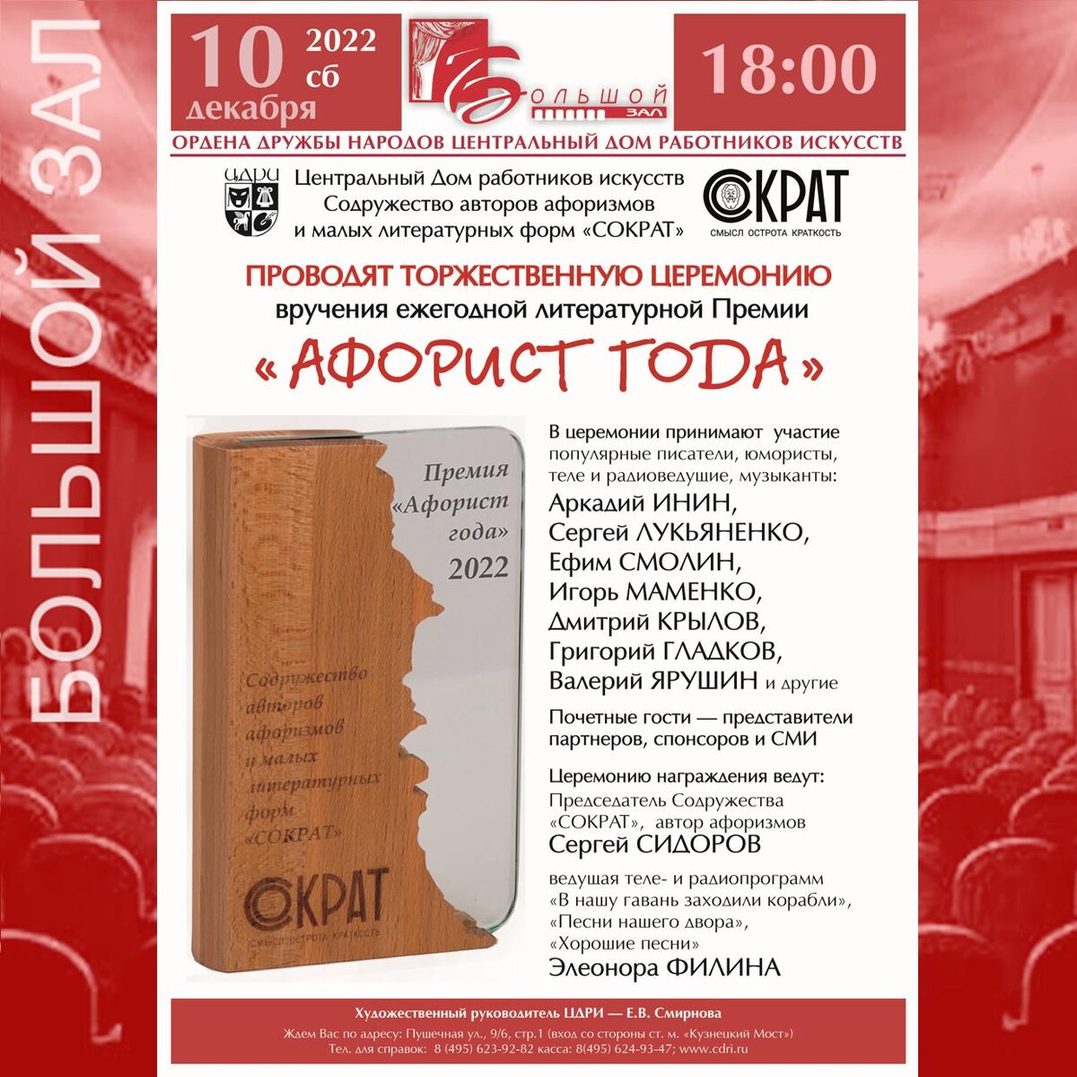 #премия #афористгода #литературнаяпремия #церемониявручения #ЦДРИ #СОКРАТ #москваафиша #афишамосква #афиша #премия2022