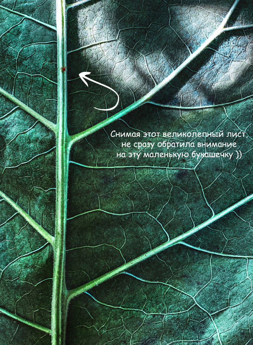 Когда снимала этот великолепный лист, даже не заметила маленькую, красивую букашечку.