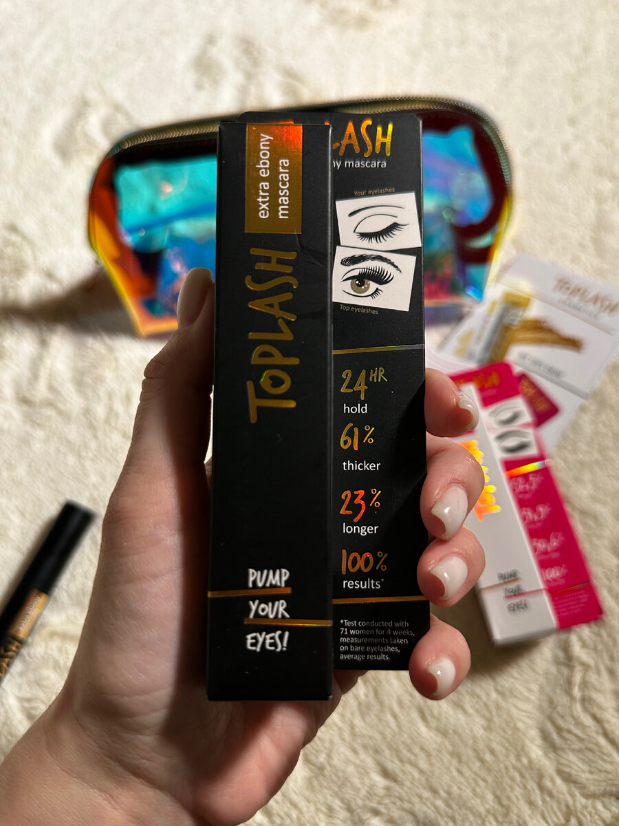 Такой вид туши далеко не новинка на косметическом рынке, однако почему-то многие удивляются, что есть туши, которые смыкаются лишь…теплой водой! Такая тушь есть и у меня, она от TopLash (это тот бренд, у которого есть крутейшая сыворотка для роста ресниц и благодаря именно ей я и отрастила свои ресницы). В чем же преимущество термотуши, в частности, от TopLash? У этой туши изогнутая НЕсиликоновая щеточка. Она очень хорошо приподнимает реснички и фиксирует их на весь день. С такой тушью можно сделать абсолютно любой эффект на ресницах: и «лисий» эффект, и «паучьи лапки», и тд. И да, данная тушь НЕ требует использования мицеллярной воды или гидрофильного масло, так как она легко и БЕЗ разводов ссыпается теплой водой (главное, чтобы температура была 37-38 градусов). У туши 3 главных компонента: Достойный состав! Кроме насыщенного черного цвета и стойкости, вы получаете еще и отличный уход за ресницами. Я, кстати, взяла себе тушь и сыворотку в наборе, который идёт с косметичкой. На мой