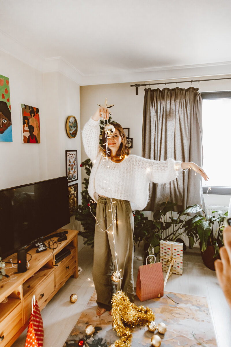 1. Развесьте ленты с огоньками вдоль стен или по периметру потолка. Особенно эффектно они будут смотреться с натяжным потолком с глянцевой поверхностью. Подсветка создаст яркие цветные блики, полностью преобразив комнату. Также украсьте дверные проемы и арки гирляндой-занавесом в виде дождя или бахромой. Для более уютной атмосферы используйте огни пастельных оттенков (белый, желтый, розовый, голубой). 2. Великолепно смотрятся огни новогодней гирлянды на рамах картин и зеркал. В полумраке они создают причудливую игру отражений света и теней, отбрасывая цветные блики на стены. Одноцветную светодиодную гирлянду можно опутать пышной мишурой — тогда огоньки будут таинственно мерцать в серебристых или цветных блестках. Не переживайте по поводу пожара: LED-гирлянды могут работать до 100 часов подряд, не перегреваясь. 3. С помощью зелёной гирлянды «нарисуйте» на стене ёлку, с помощью белой — заснеженный домик, голубой напишите год и поздравление. Добавьте елочные игрушки (шары или другие ф